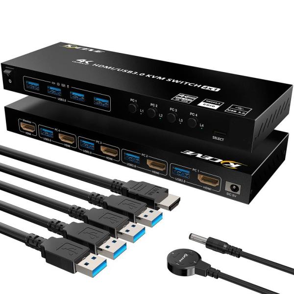 2021年9月に Amazon で購入したのですが、現在は取り扱いがないようで、上記は手元にある製品の新型のようです。手元の製品にはワイヤレスリモコンが付いていました。今回購入した USB 3.0 仕様も同じ KVM 切替器ですし同じブランドなので形状はほぼ同じです。USB 3.0 仕様は少し筐体が小さいのと、リモコンが有線な点、そして当然、USB ポートが 3.0 仕様なのが相違点です。