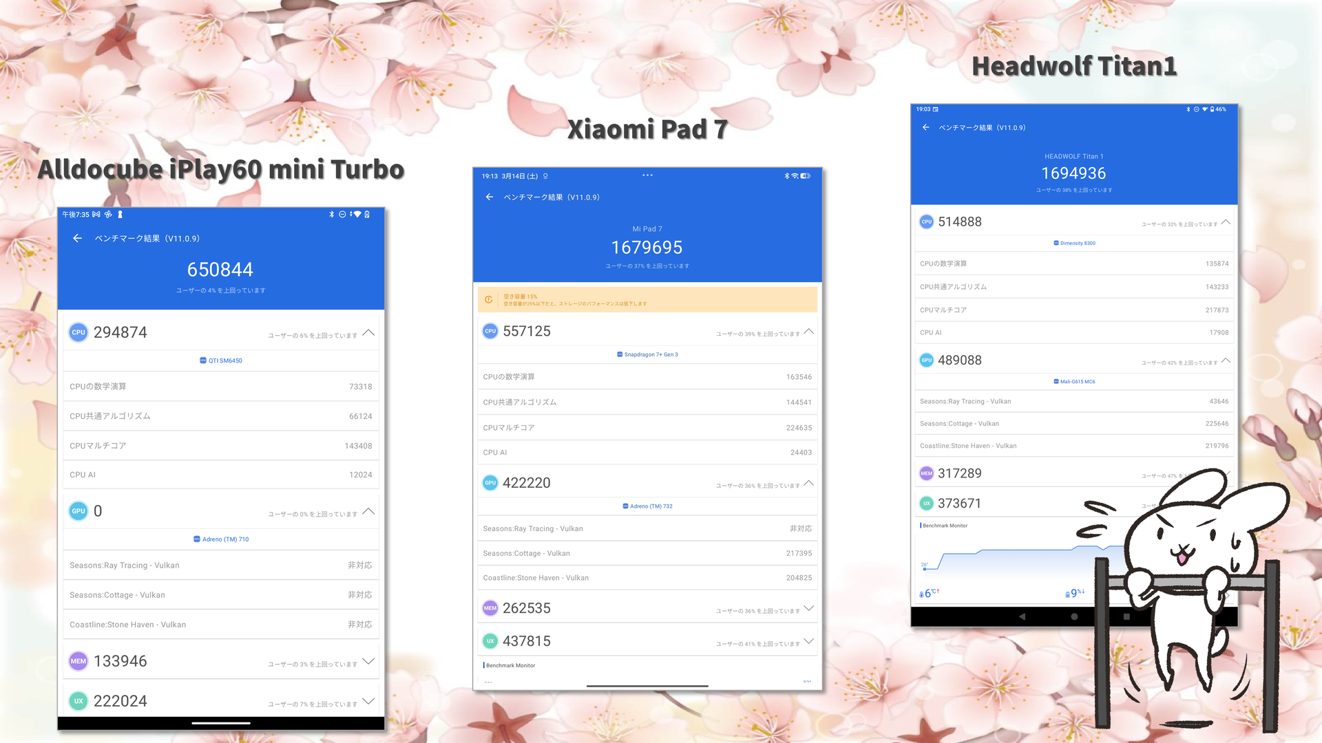 • Xiaomi Pad 7/Alldocube iPlay60 mini Turbo との比較